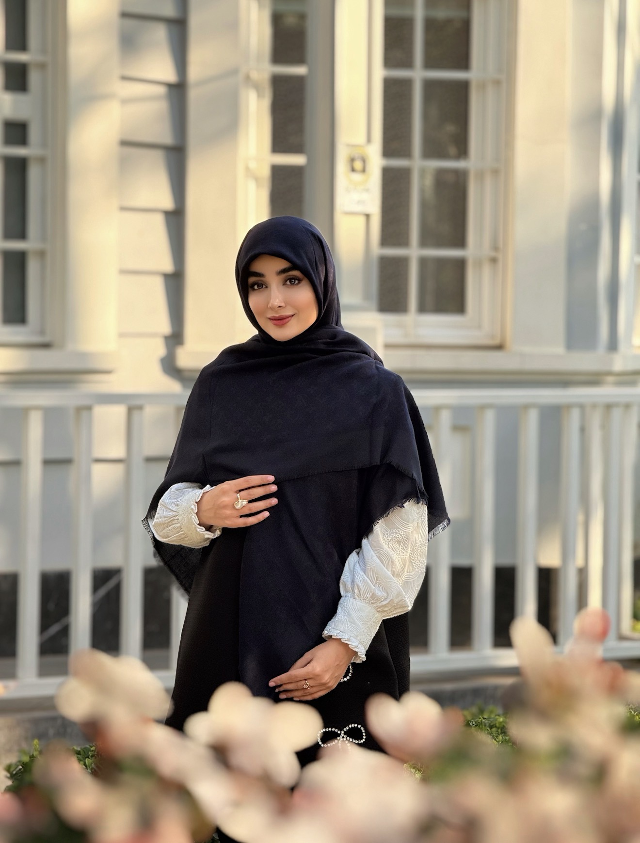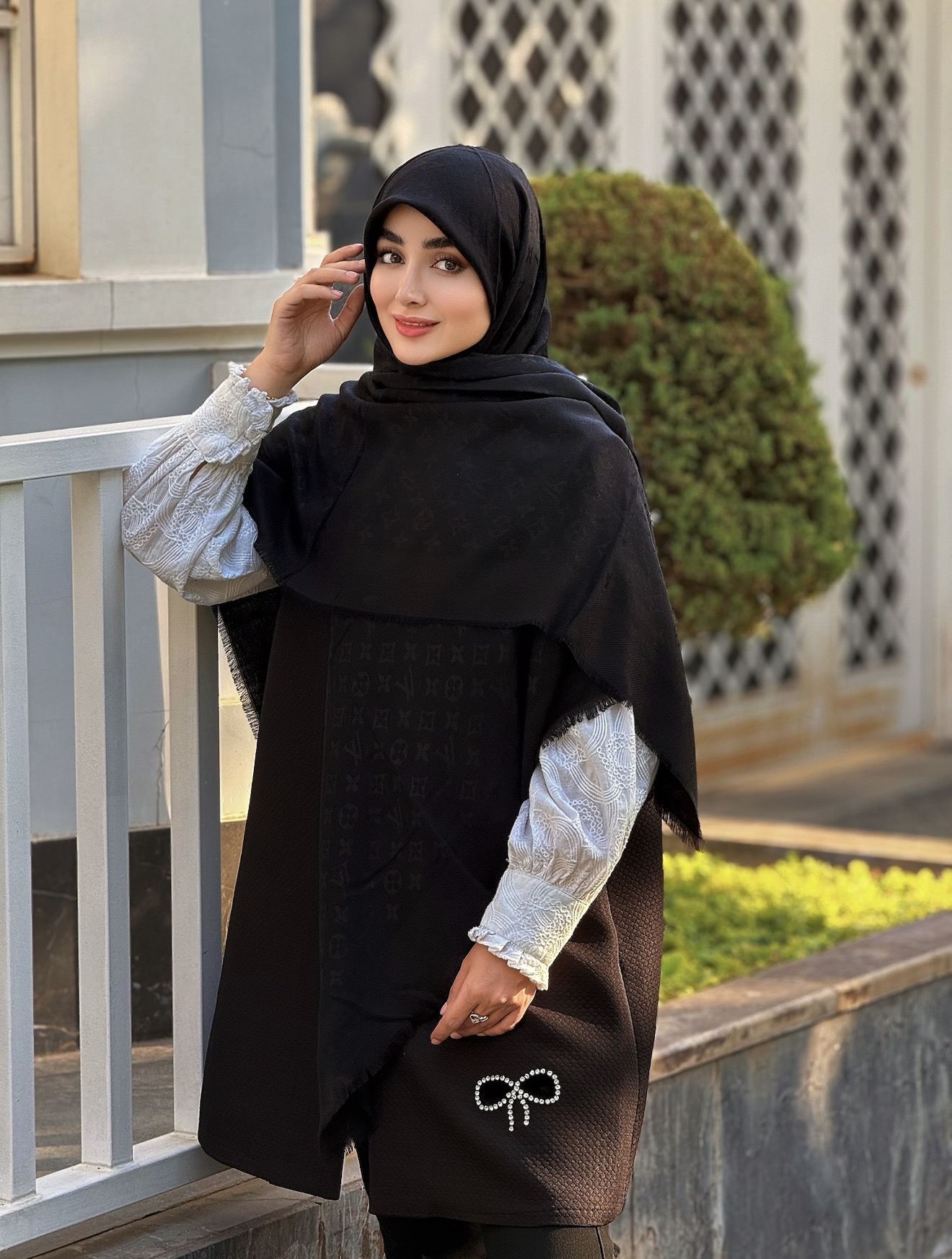 روسری نخ کشمیر سیااسکارف شنل قواره ۱۴۰