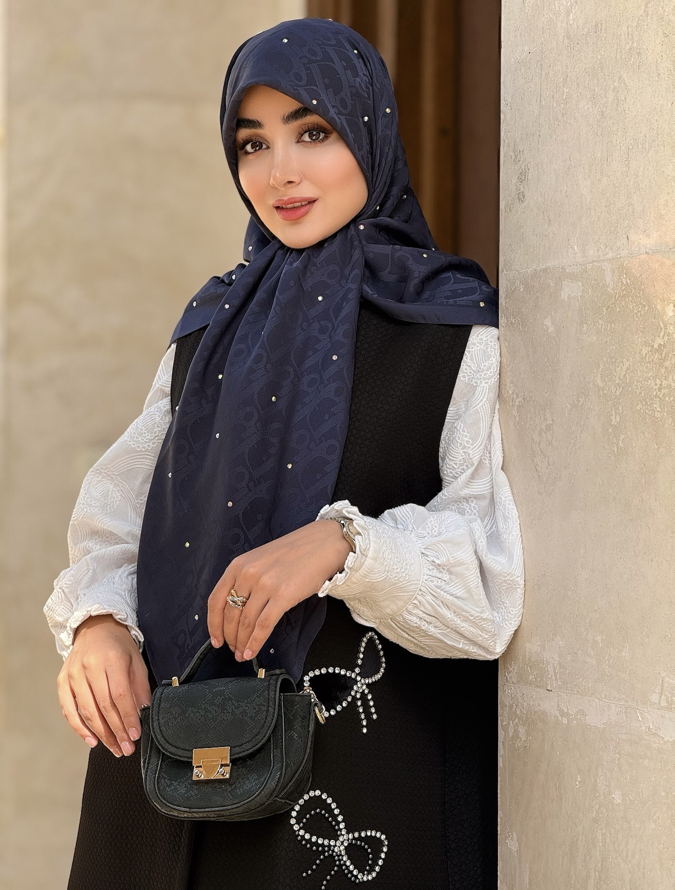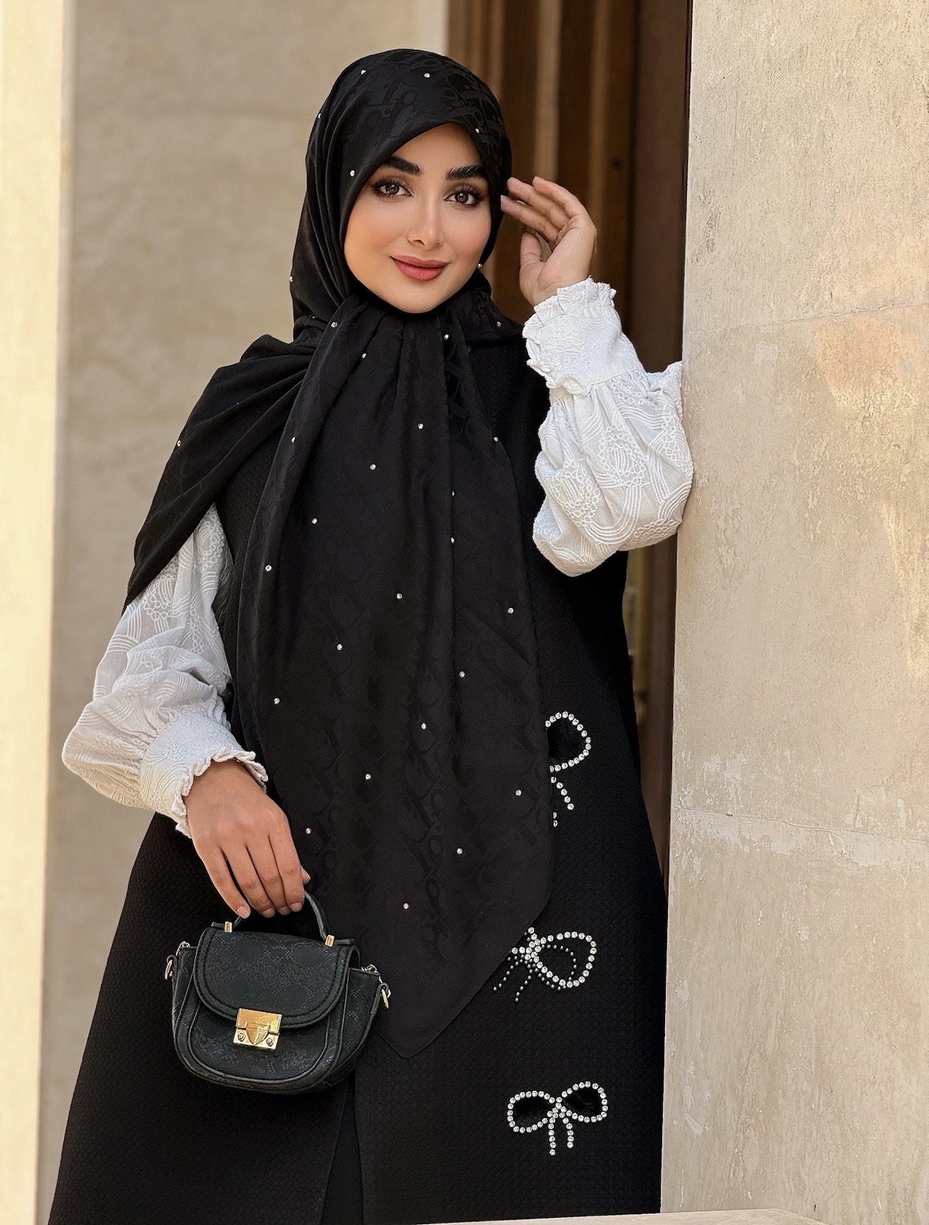 روسرى نخ ابريشم ديور وارداتى مزين به سنگ