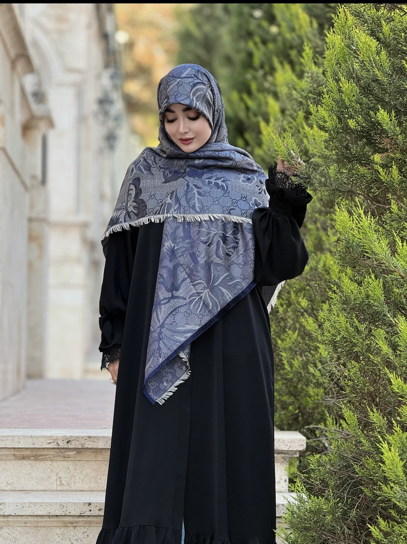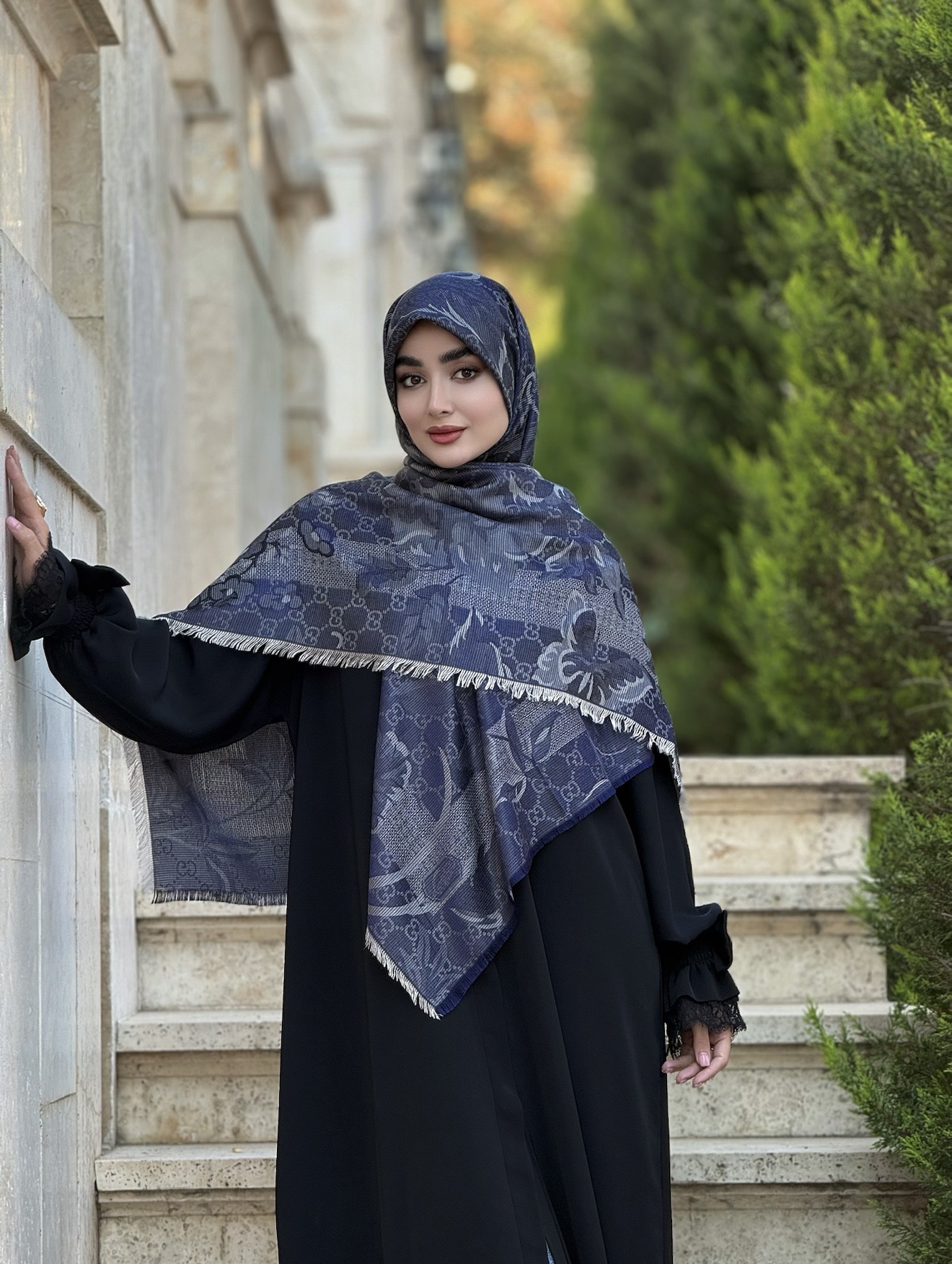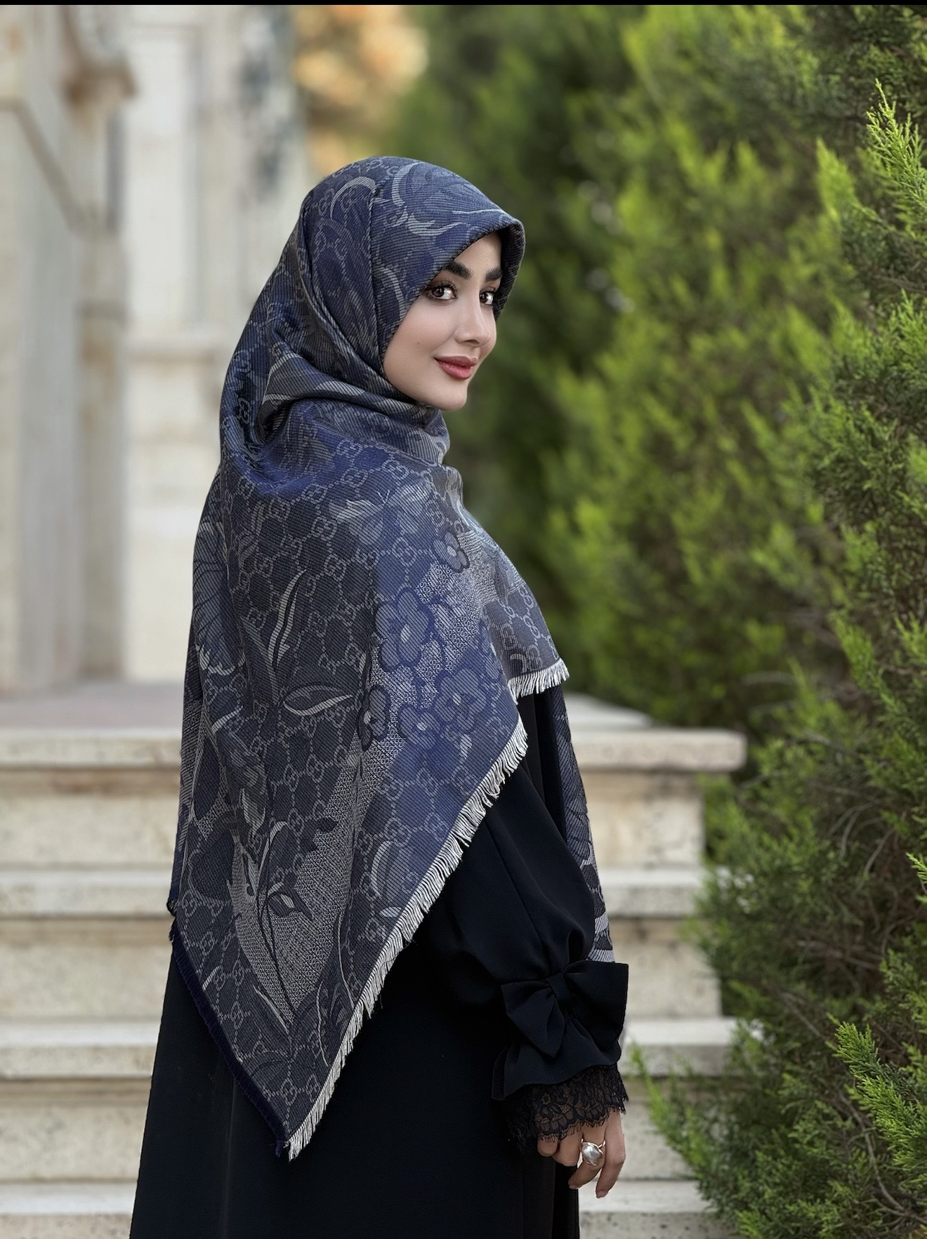 روسری سرمه ای طوسی گوچی